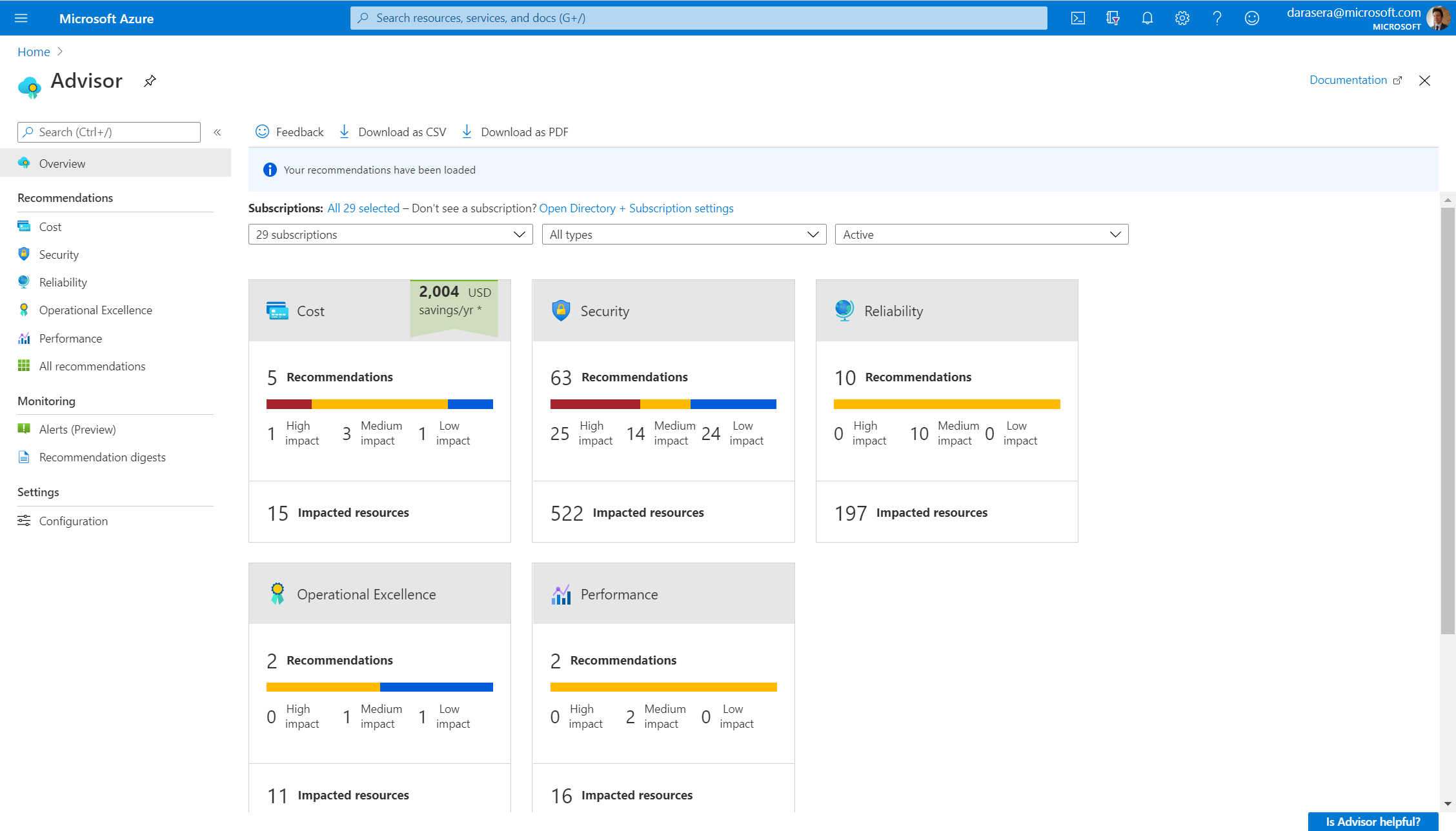 • Advisor for Azure Government offers slightly different recommendations. Learn more.
