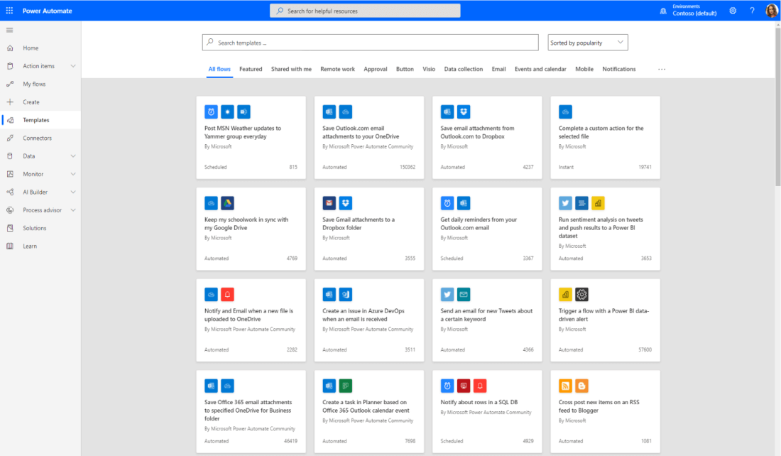 Power Automate buttons appear directly in the interface of Dynamics 365 and Microsoft 365 applications. For example, use Power Automate to start automating with one click in OneDrive. Or find automation solutions in the Microsoft Teams store.