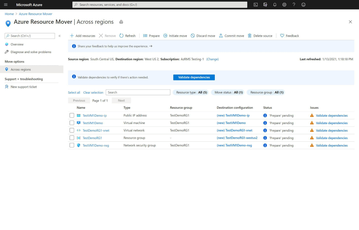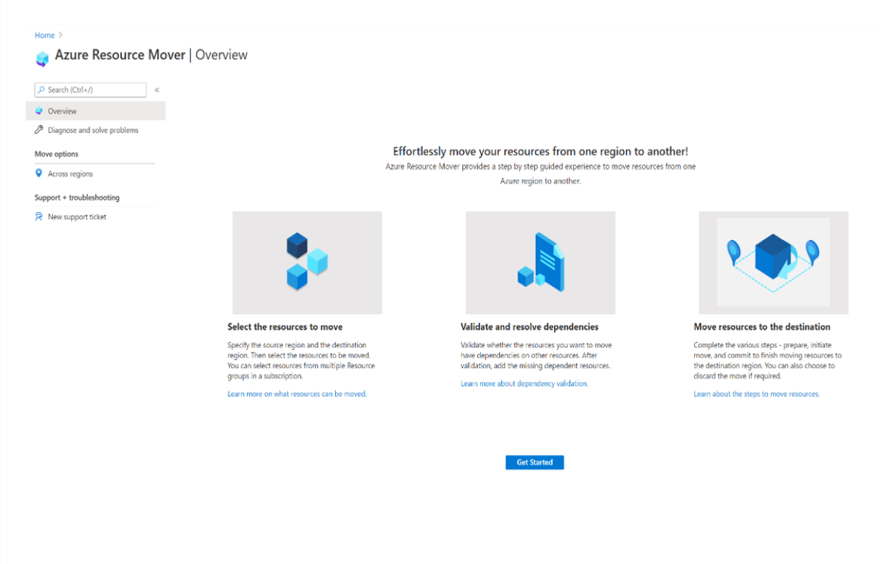 Take advantage of Azure global infrastructure capabilities and seamlessly move your resources to the region that best suits your needs. Streamline the planning process to accelerate your move, and help protect your resources.