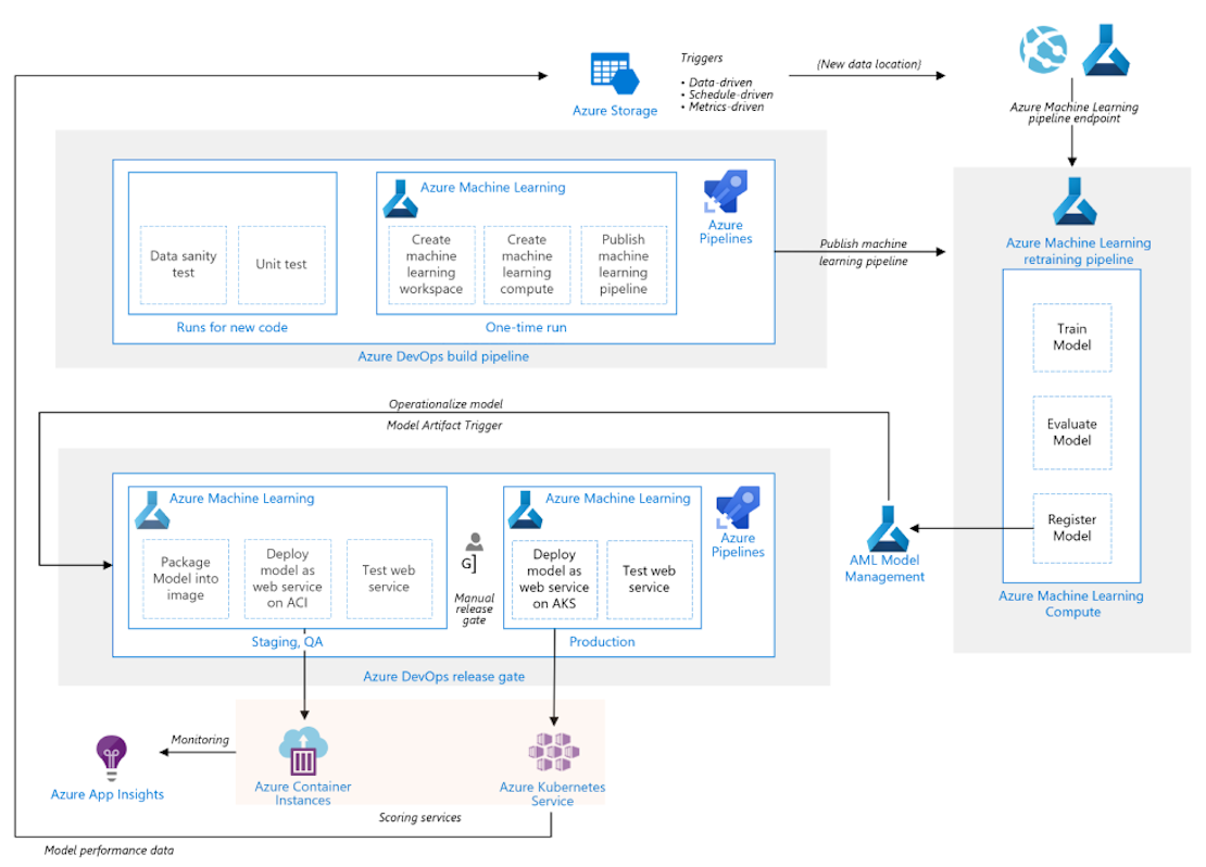 Implement a continuous integration and continuous delivery (CI/CD) and retraining pipeline for an AI application using Azure DevOps and Azure Machine Learning.