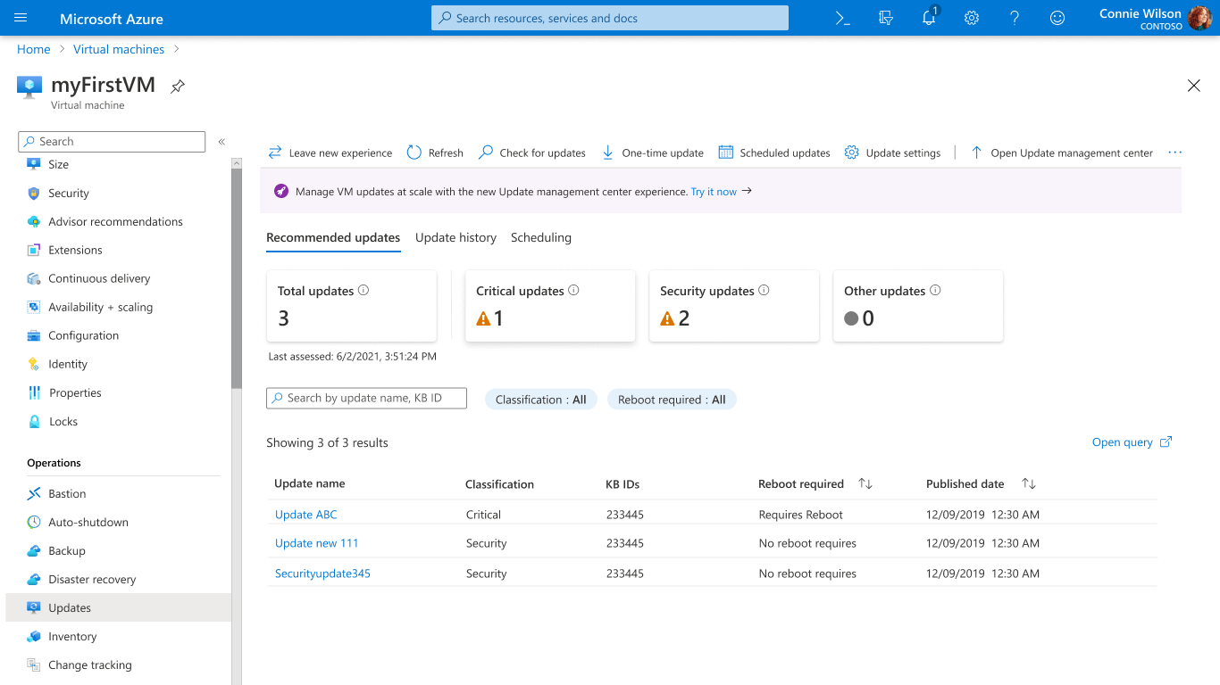 - Start managing updates for your machines natively in Azure with an intuitive user experience.