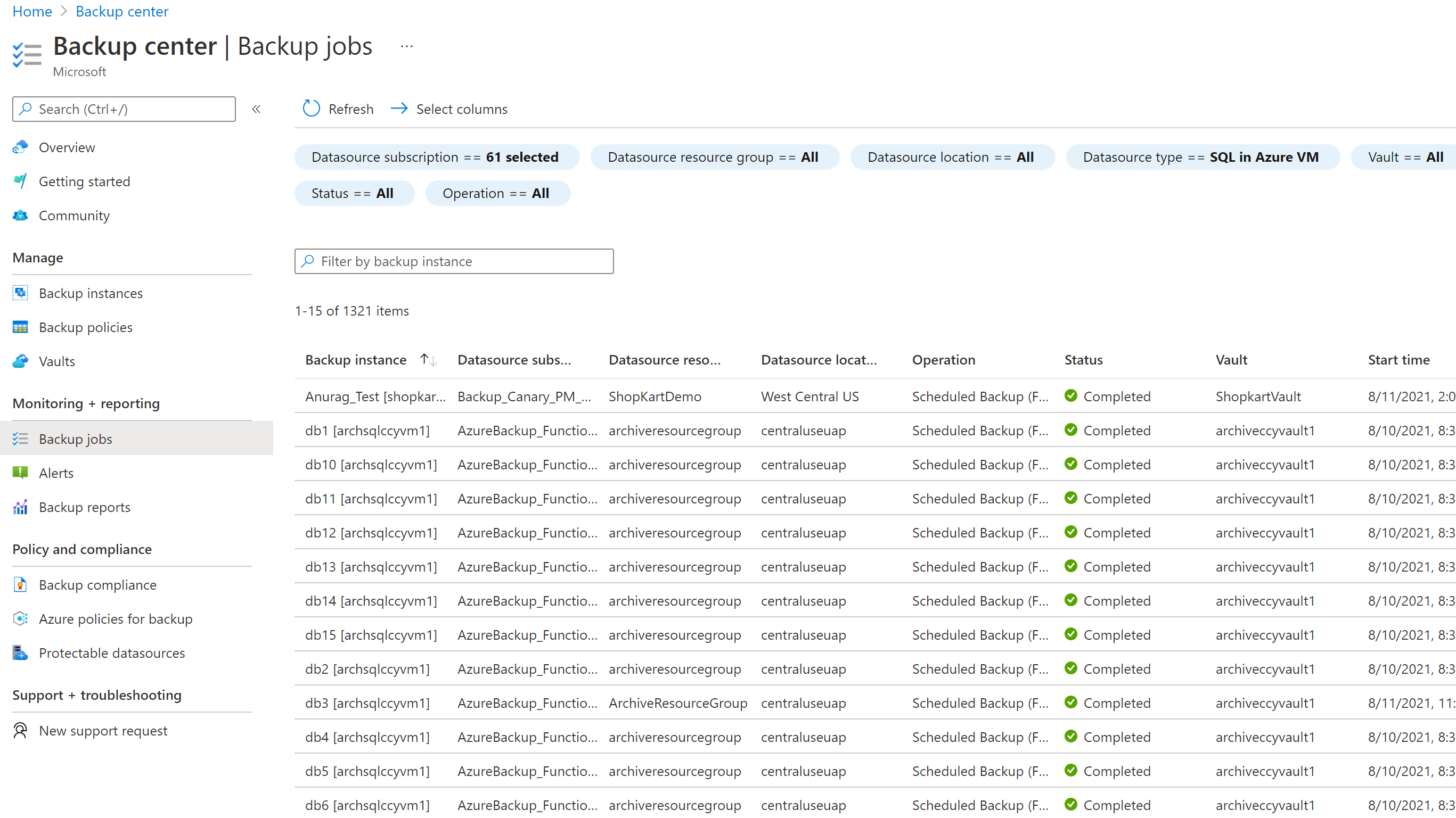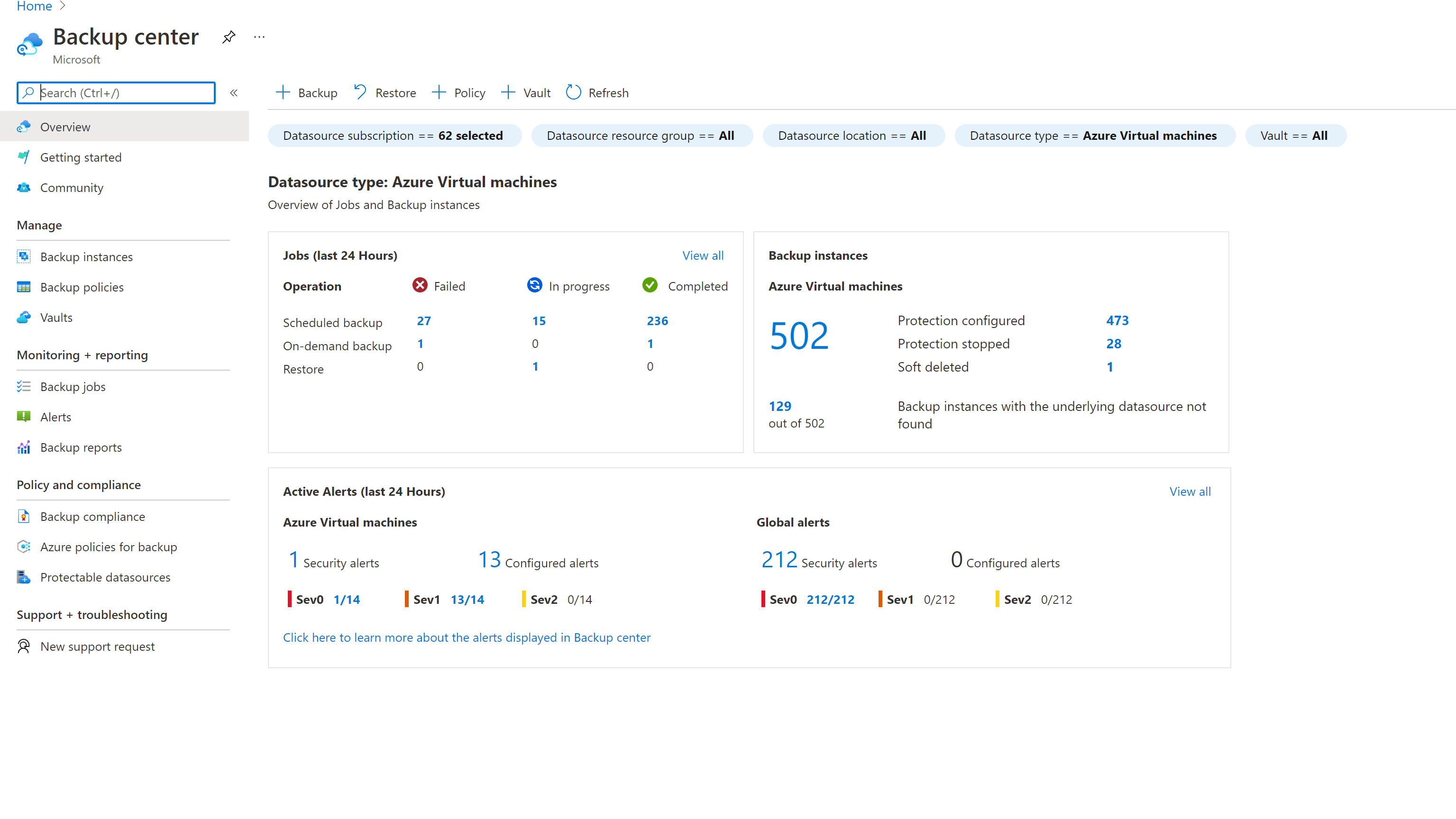 • Manage and monitor your entire backup estate from a central console with Backup center.