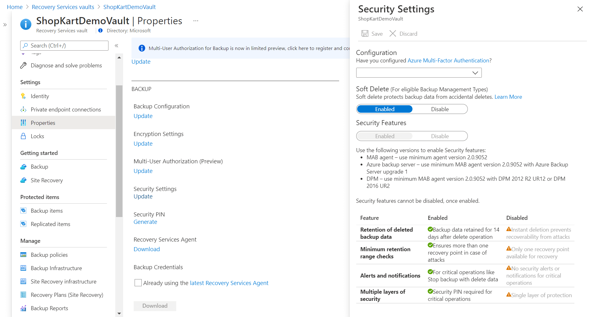 • Enable secure transfer of backups to Azure Backup storage with private endpoints.