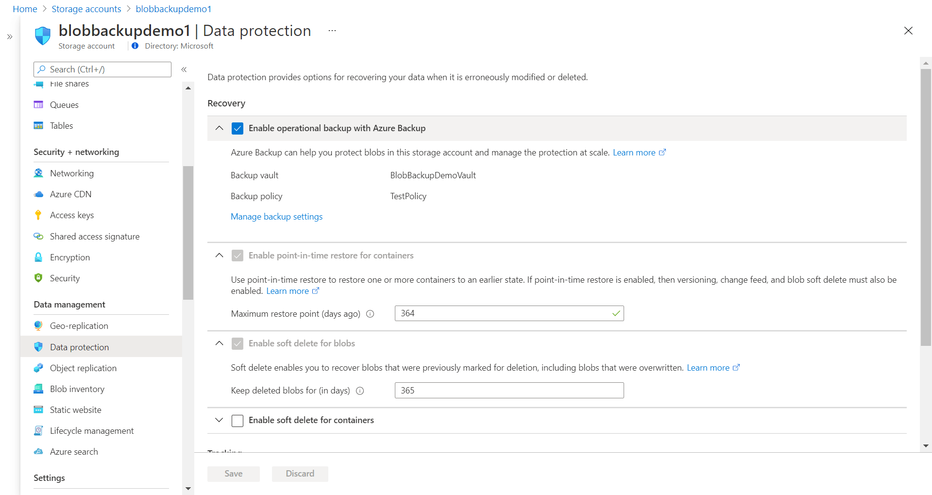 • Prevent accidental data loss by retaining backups for 14 days after deletion with soft delete.