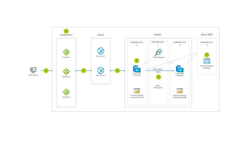 This solution architecture illustrates a canonical architecture to achieve high availability for your Oracle Database Enterprise Edition in Azure.
