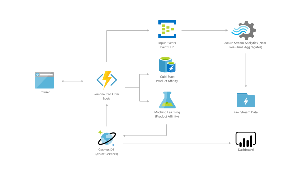 The e-commerce website includes simple order processing workflows with the help of Azure services. Using Azure Functions and Web Apps, developers can focus on building personalized experiences and let Azure take care of the infrastructure.