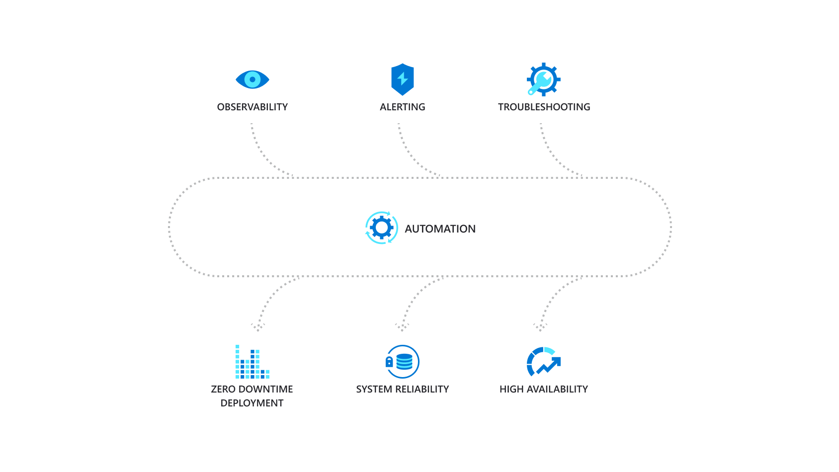 With an increasingly complex environment to manage, maximizing the use of automation helps you improve operational efficiency, identify issues before they affect the customer experience, and quickly mitigate issues when they occur. Fully managed platforms provide automated logging, scaling, and high availability. Rich telemetry, actionable alerting, and full visibility into applications and the underlying system are key to a modern application development approach.