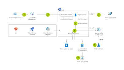 Train a recommendation model using Azure Databricks and deploy it as an API by using Azure Cosmos DB, Azure Machine Learning, and Azure Kubernetes Service (AKS).