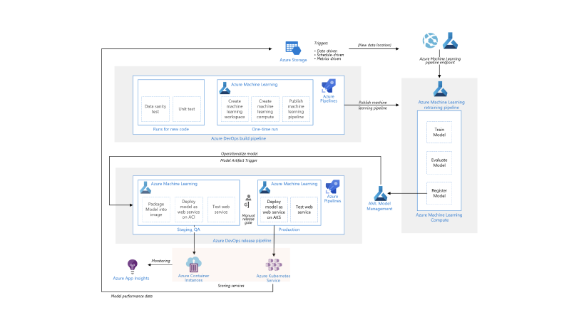 Accelerate deployment and simplify management of machine learning solutions with MLOps. Implement a CI/CD and retraining pipeline for an AI application using Azure DevOps and Azure Machine Learning.