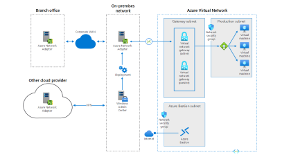 Explore the best way to implement a secure hybrid network footprint using Azure tools.
